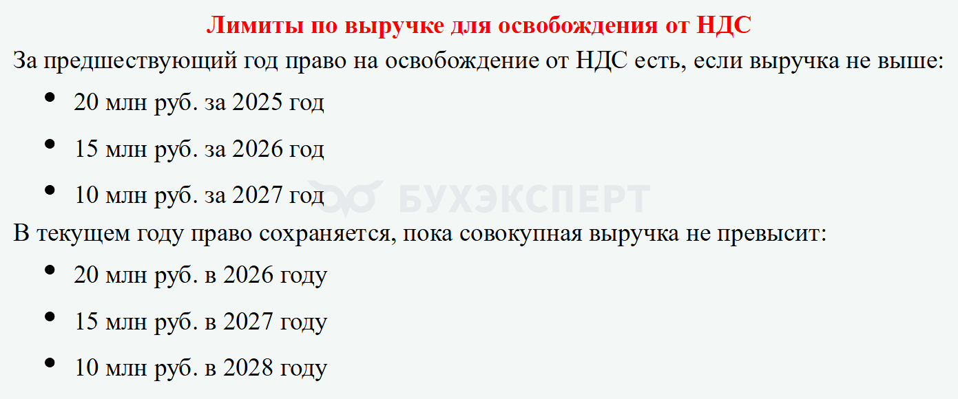 Для ИП на ЕСХН освобождение от НДС возможно при выполнении одного из условий: