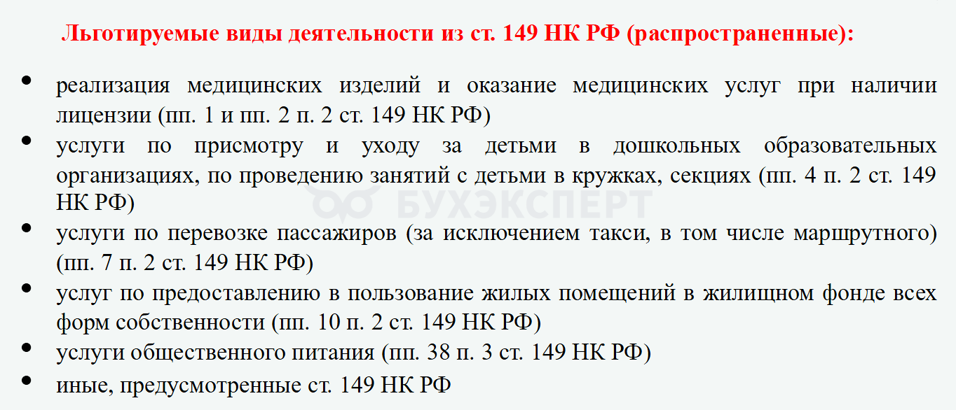 Операции, освобождаемые от НДС