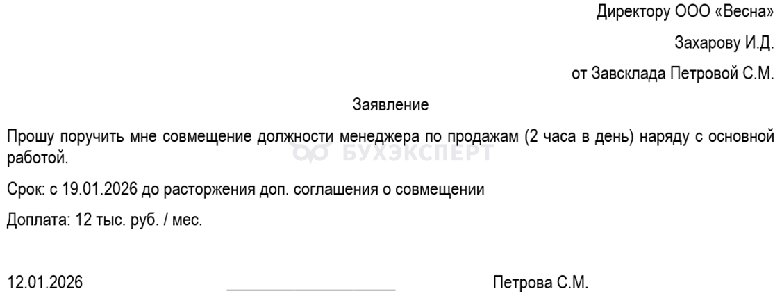 Сложившийся на практике порядок оформления совмещения: