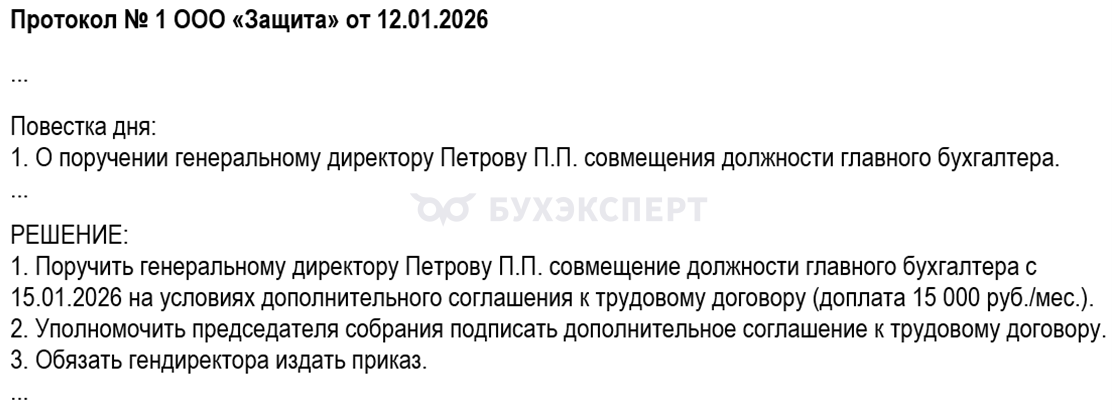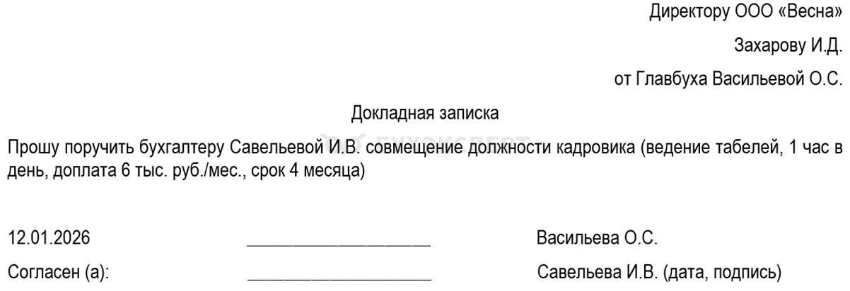 - Издайте приказ о совмещении, с указанием основных параметров совмещения.