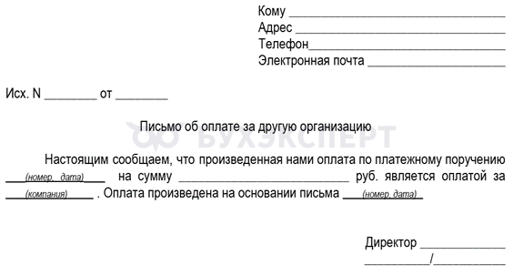 Кратко о письме об оплате за другую организацию