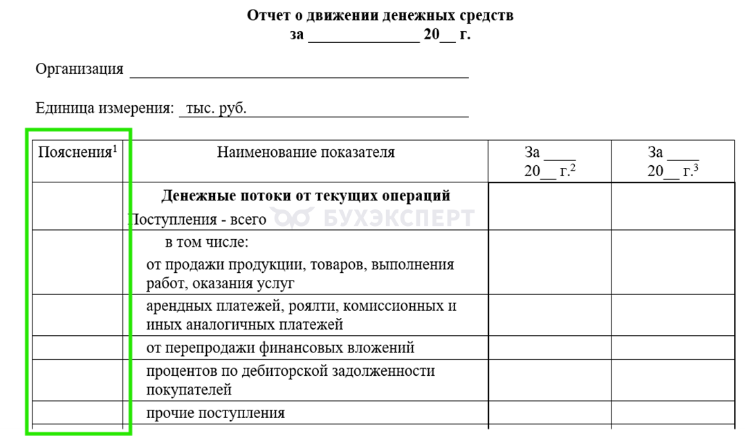 Структура отчета предусматривает классификацию денежных потоков по трем направлениям: текущей, инвестиционной и финансовой.