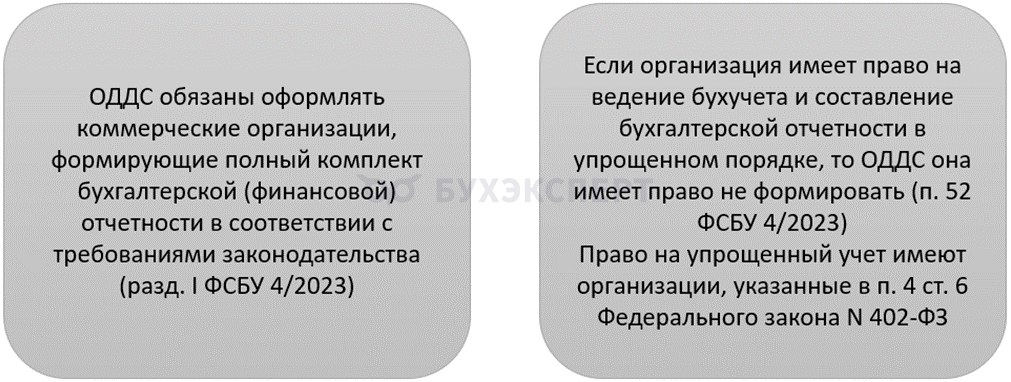 В ФСБУ 4/2023 сказано, что некоторые организации вправе не представлять ОДДС.