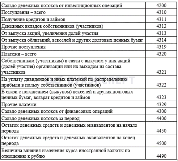 Строка 4200 отражает, насколько активно компания вкладывает средства в свое развитие (покупка оборудования, стройка) или извлекает средства из активов (продает имущество, закрывает депозиты). - Заполнение раздела «Денежные потоки от финансовых операций»