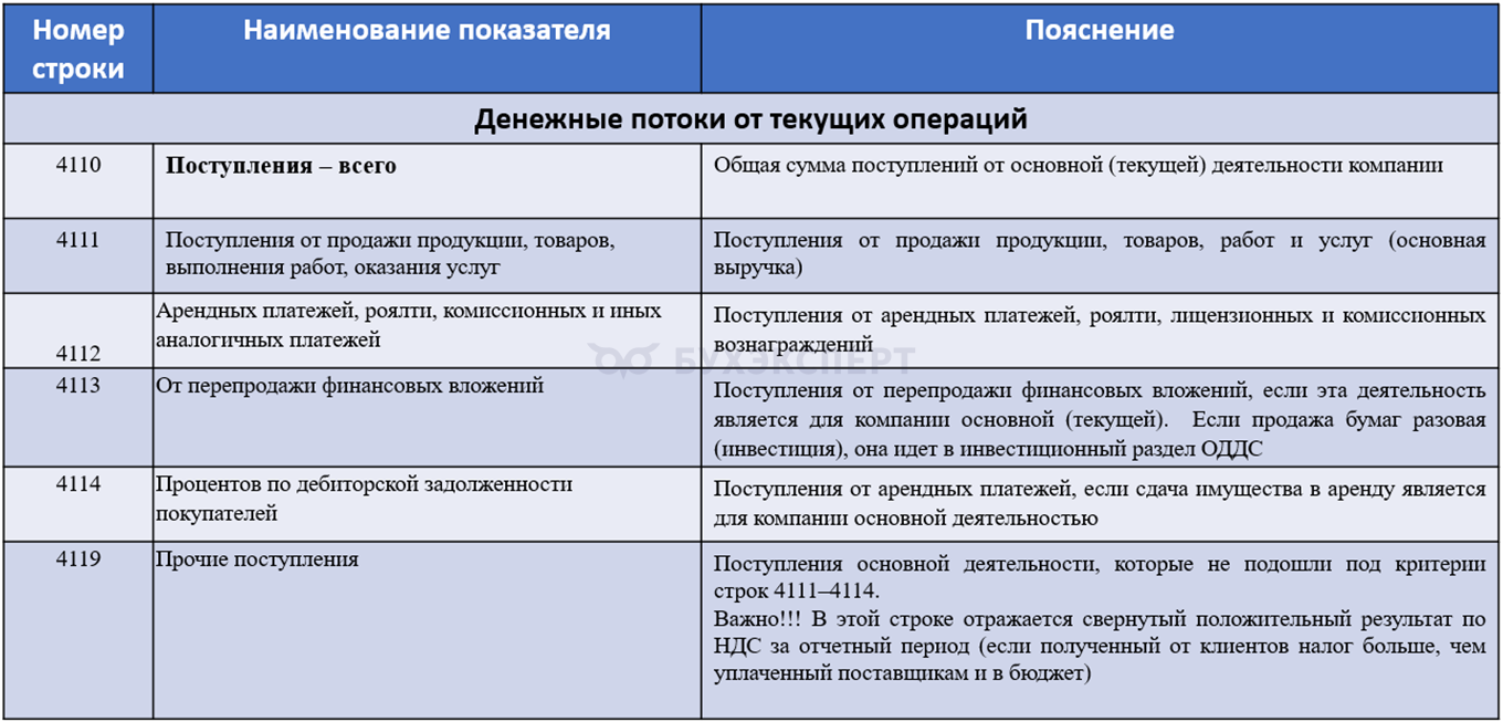 - ОДДС отражает реальные денежные потоки компании. В отличие от других форм отчетности, здесь учитываются только фактические оплаты (кассовый метод), которые группируются по трем направлениям деятельности: основной, инвестиционной и финансовой