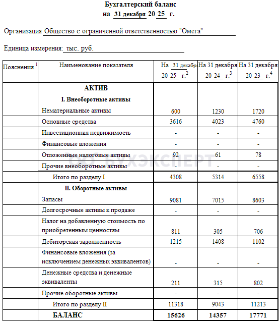 Скачайте образец бухбаланса по общей форме за 2025 год