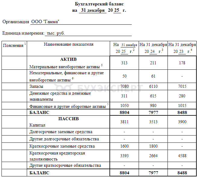 - В 2026 году бухгалтерский баланс за 2025 год составляют по указаниям ФСБУ 4/2023. Допустимо использовать рекомендуемый бланк или разработать собственный, но с соблюдением обязательных требований стандарта