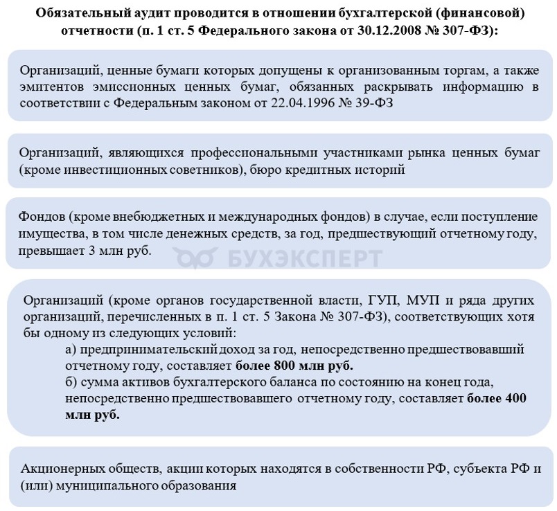 Например, аудит обязателен для: