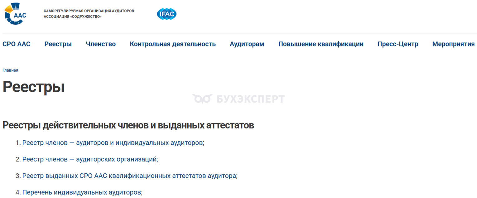 Основные сведения из реестра публикуются на сайте саморегулируемой организации (СРО) аудиторов Ассоциация «Содружество».