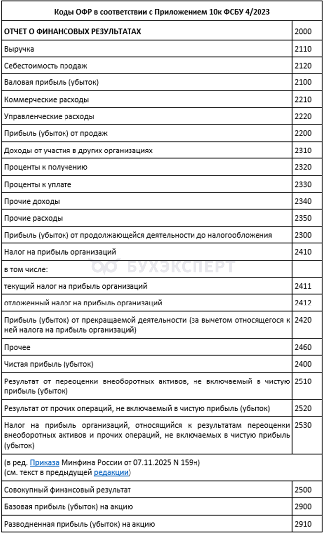 Введение ФСБУ 4/2023 с 2025 года изменило статус отчетных форм, включая ОФР, с жестких бланков на рекомендованные образцы. Это наделило организации правом адаптировать структуру отчета под отраслевые особенности и специфику своего бизнеса. Статус «рекомендованной» означает, что вы можете добавлять дополнительные строки для детализации или удалять те, по которым у компании нет данных. Но основные группы показателей (выручка, себестоимость, налоги) должны сохранять свои стандартные коды (коды утверждены в Приложение N 10 к ФСБУ 4/2023).
