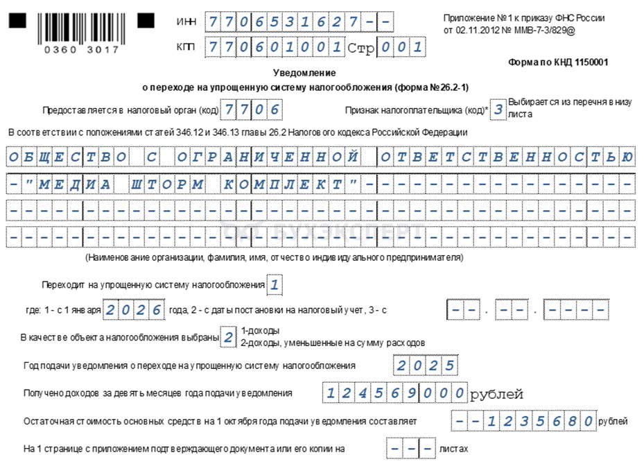 При заполнении уведомления по форме 26.2‑1 тщательно проверьте все цифровые показатели — ошибки в суммах доходов или остаточной стоимости основных средств могут привести к отказу в переходе.