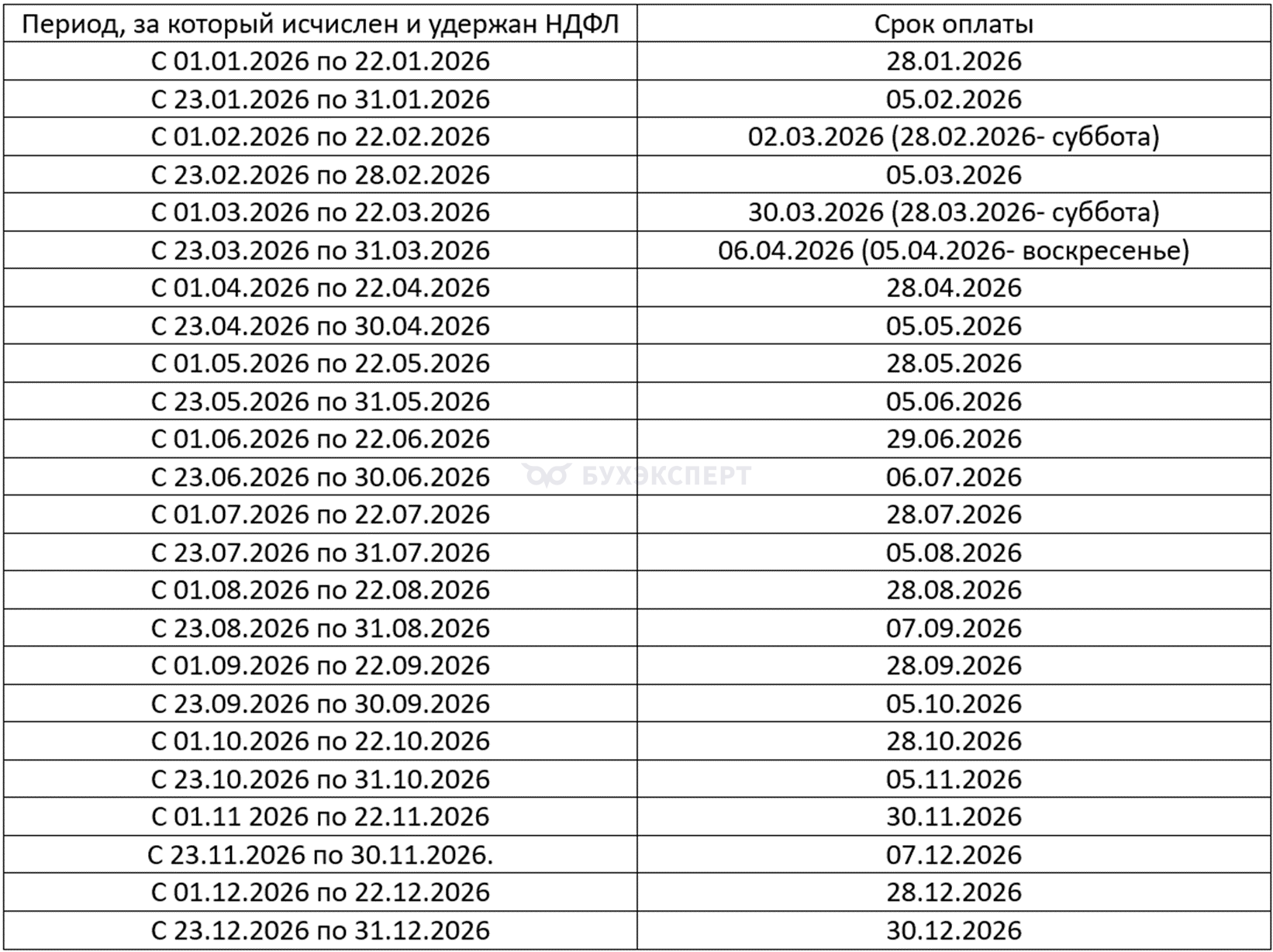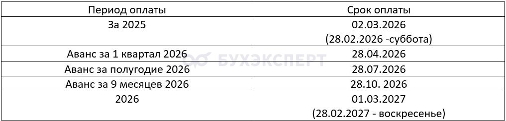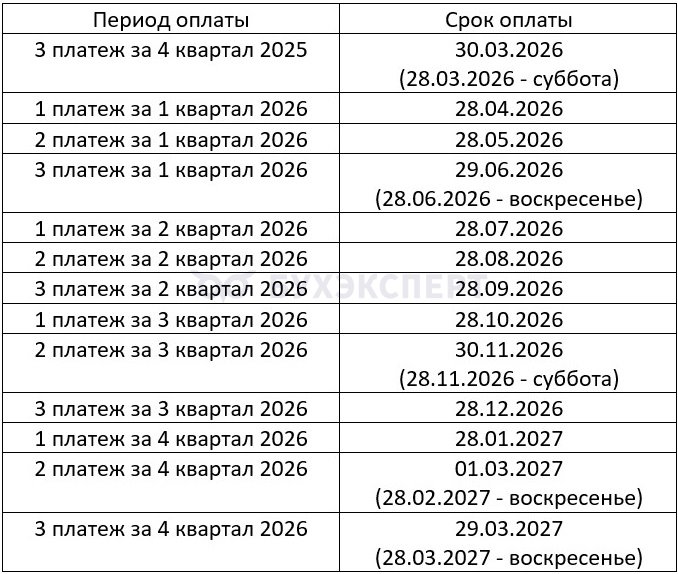 Расскажем о сроках уплаты в 2026 году по основным видам налоговых обязательств.