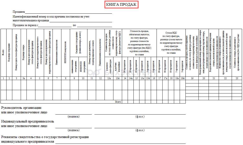 Срок формирования книги продаж — не позднее 25-го числа месяца, следующего за налоговым периодом.