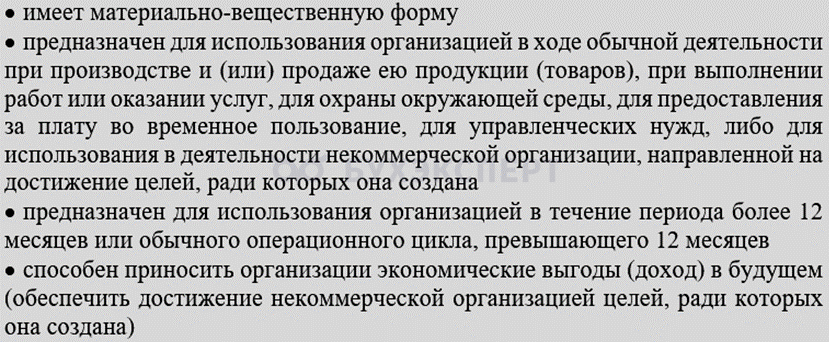 Признаки основных средств.