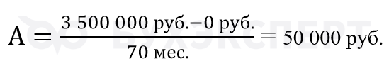 - СПИ = 70 мес. (принято для целей БУ и НУ)