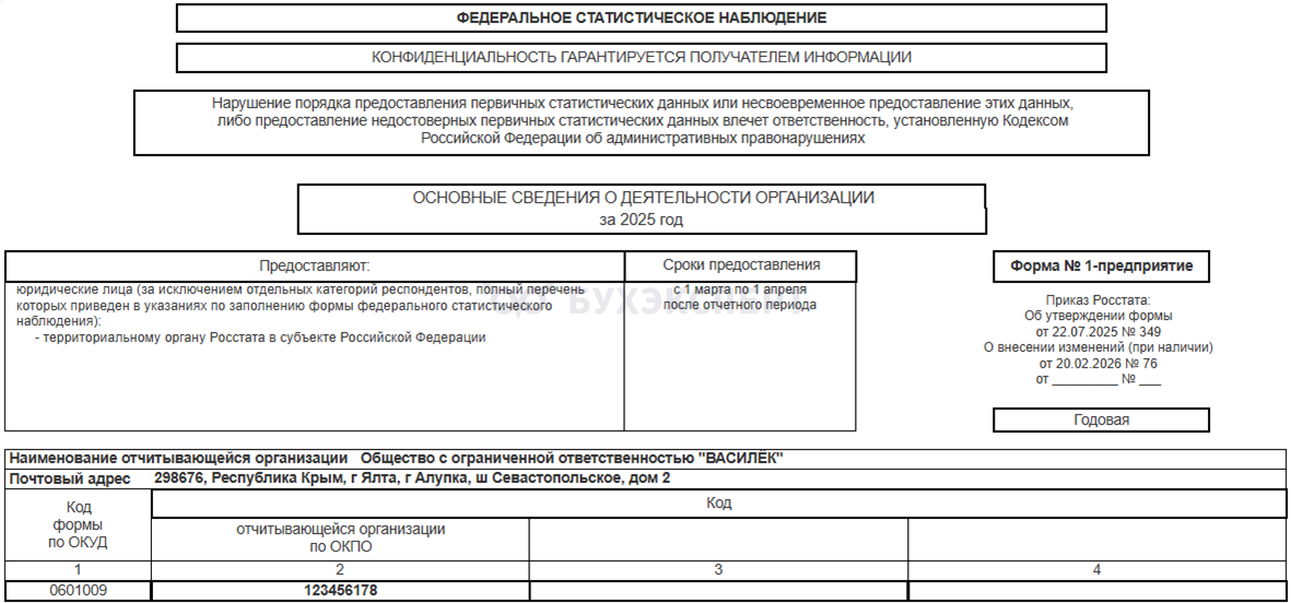 Статистическая форма № 1-предприятие: руководство по заполнению