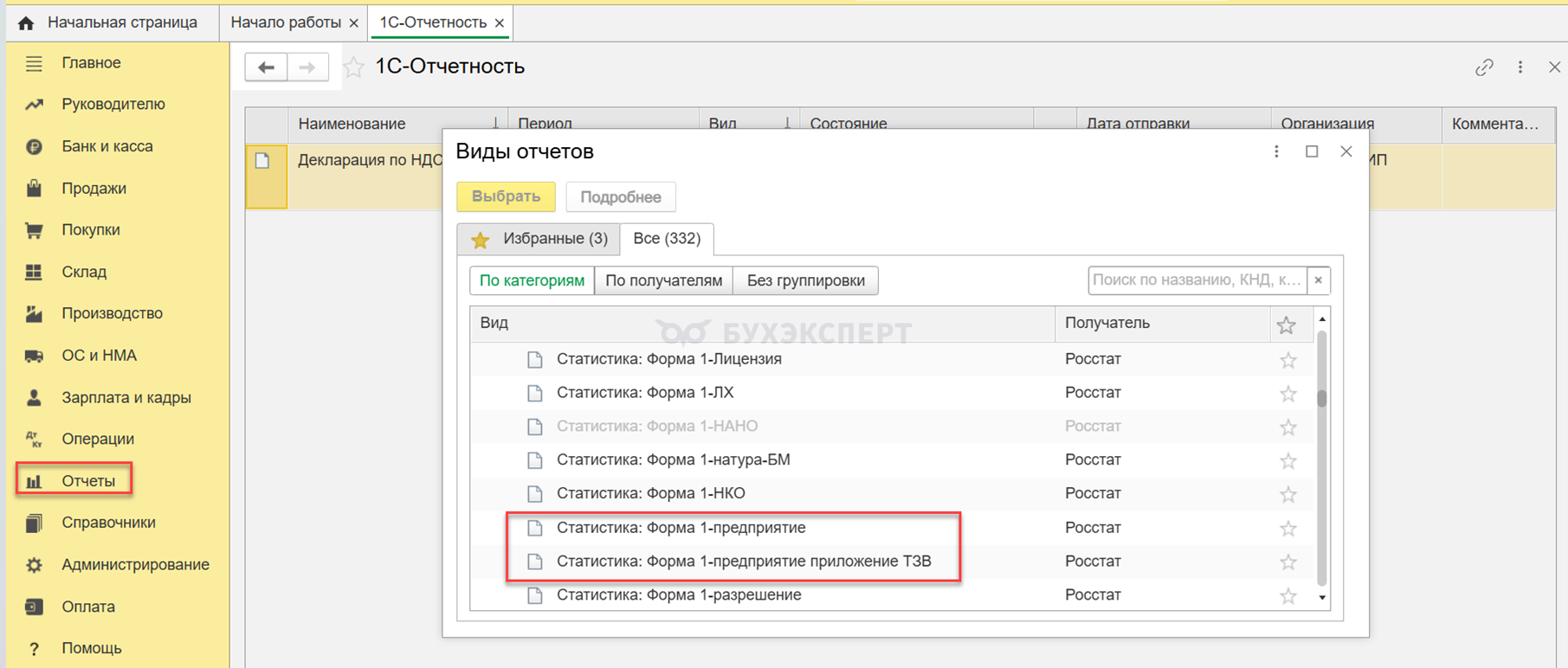 Форма № 1-предприятие доступна для заполнения в программе 1С: Бухгалтерия через раздел Отчеты → Регламентированные отчеты → Создать → Статистика: Форма 1-предприятие.