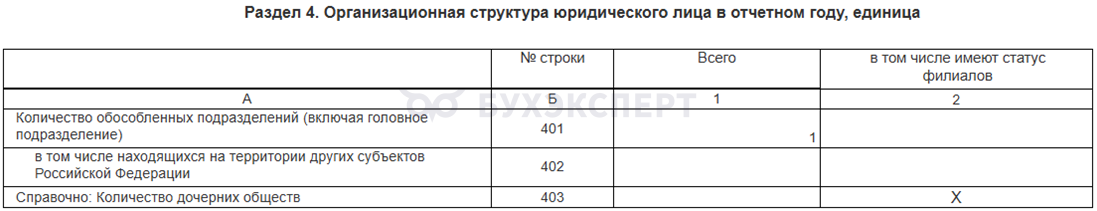 • графа 1 стр. 402 — количество подразделений в других субъектах РФ