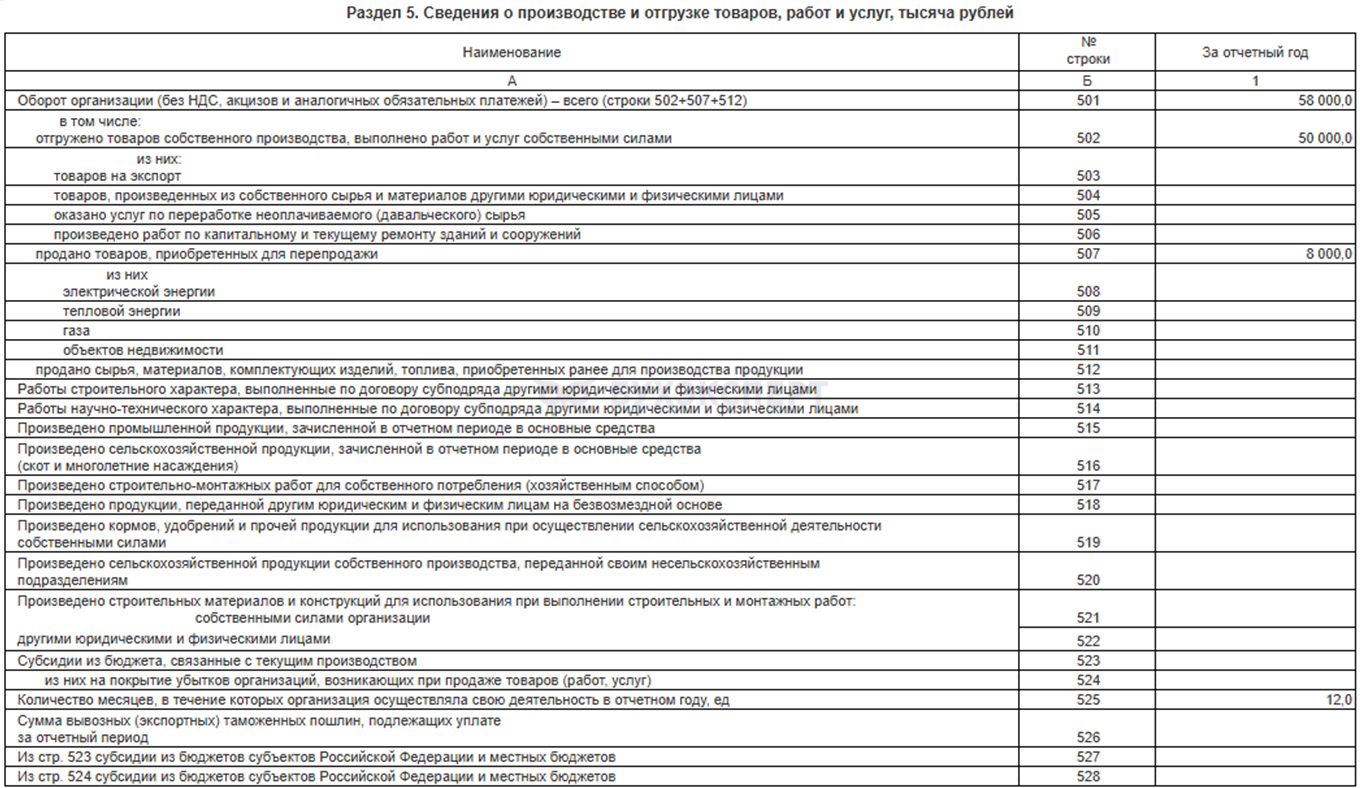 Раздел 5. Сведения о производстве и отгрузке товаров, работ и услуг