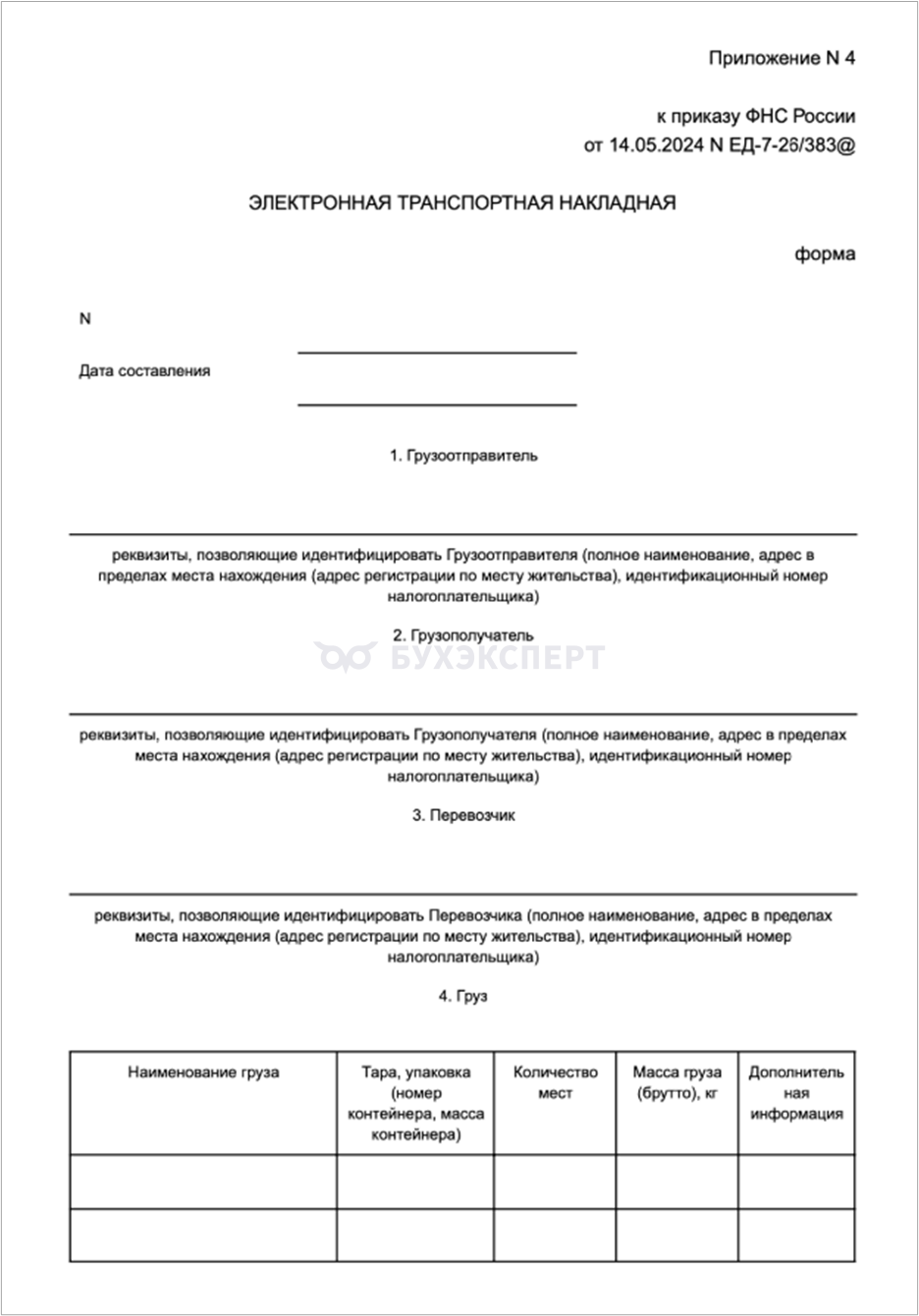 Электронная транспортная накладная содержит следующие файлы обмена (при наличии):