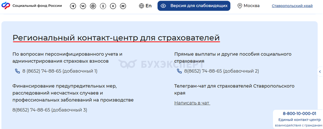 Также за информацией можно обратиться в региональный контакт-центр для страхователей или в единый контакт-центр по телефонам, указанным на сайте. Через сайт можно также отправить электронное обращение в онлайн-приемную.