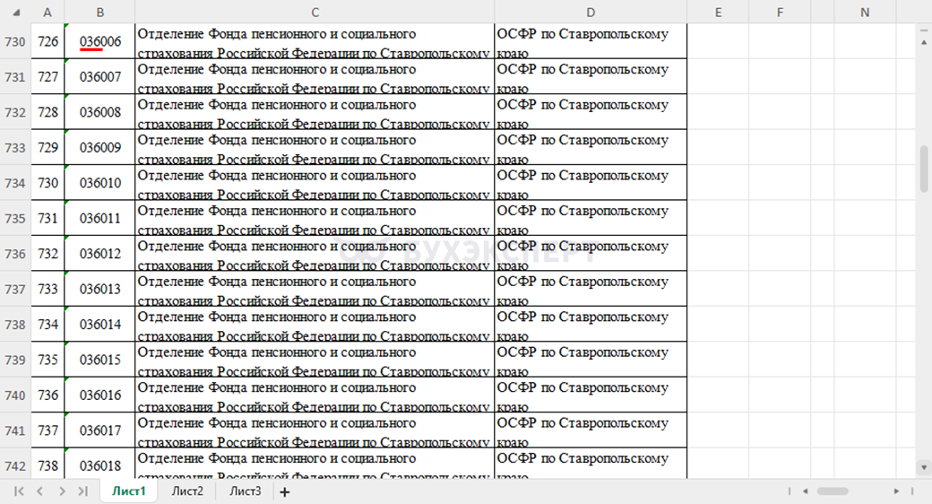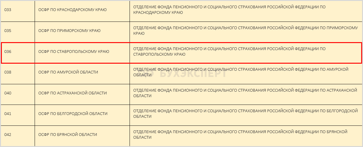 В нашем примере код 036-022 — Отделение Фонда пенсионного и социального страхования Российской Федерации по Ставропольскому краю.