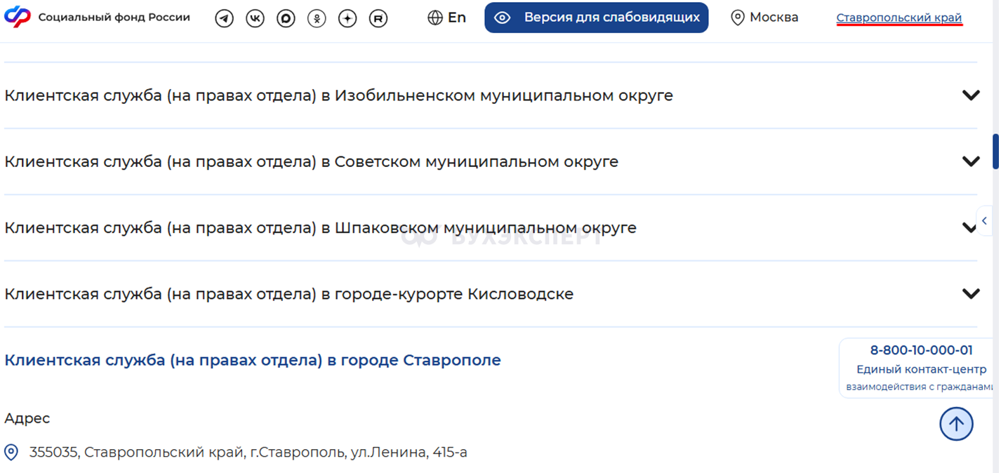 В нашем примере — Отделение фонда пенсионного и социального страхования Российской Федерации по Ставропольскому краю.