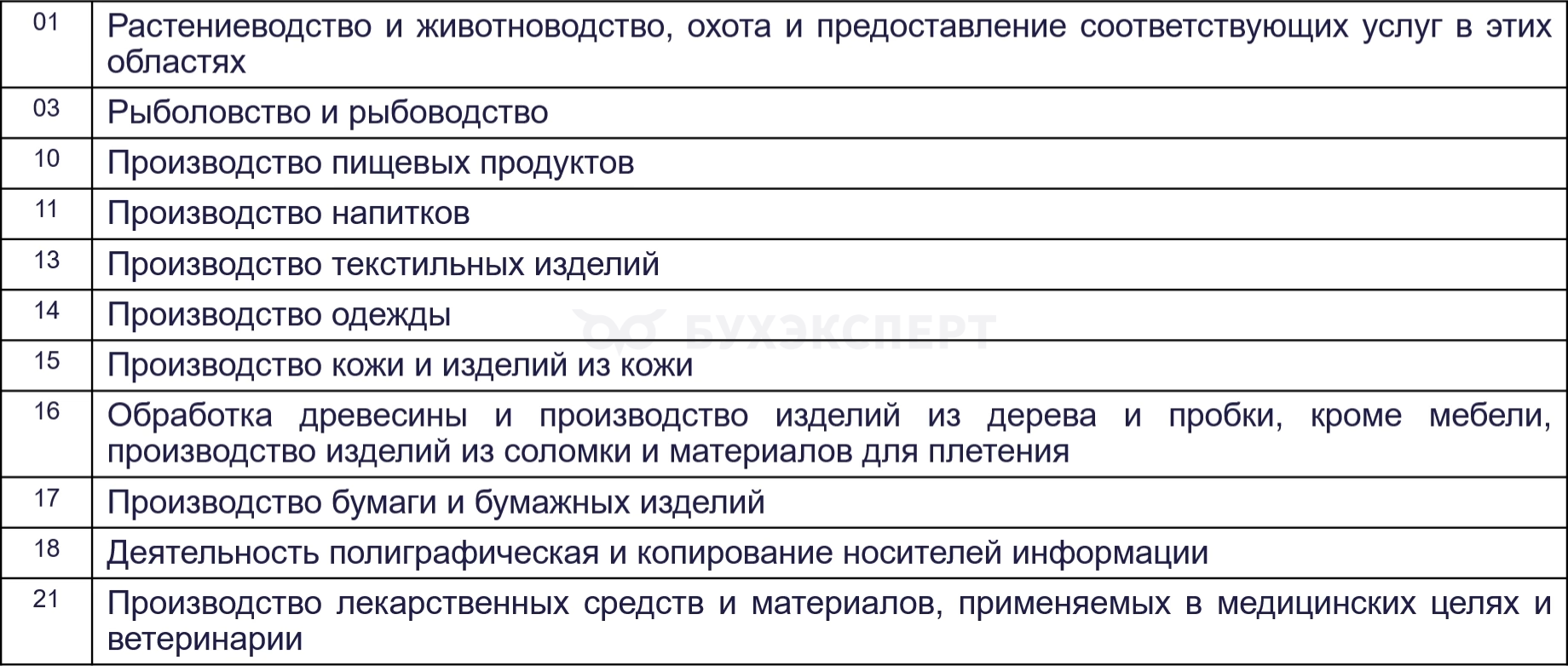 Тариф 30% → 15% могут применять только те субъекты МСП, основным видом экономической деятельности которых является один из видов по перечню, утверждаемому Правительством.